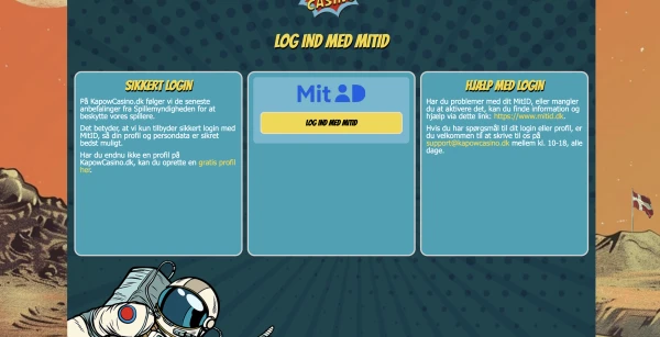 Tilbagevendende spillere kan få adgang til konto-området i få trin. Start KapowCasino login ved at åbne login-siden og indtaste din registrerede e-mail eller dit brugernavn sammen med din adgangskode. Sørg for, at oplysningerne matcher din oprindelige kontoprofil præcist. Hvis din browser gemmer adgangskoder, så tjek, at gamle oplysninger ikke udfyldes ved en fejl.