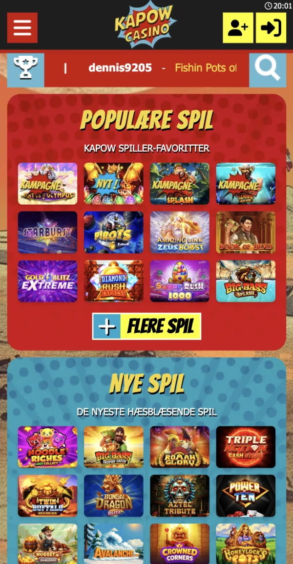 Fleksibilitet er en af de vigtigste styrker ved KapowCasino Casino. Du kan åbne spil i din mobilbrowser, logge ind, indbetale i DKK og fortsætte med spilleautomater, bordspil, jackpot-titler og live-spil fra én konto. Vores lobby inkluderer spil fra NetEnt, Play'n GO, Evolution Gaming, Pragmatic Play, Quickspin, Yggdrasil Gaming, Red Tiger Gaming, Microgaming (Apricot), Blueprint Gaming og Nolimit City, med i alt 5000 titler.